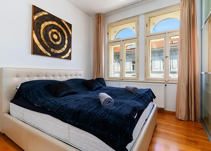 Indkvarteringen er placeret inden for et 5 minutters kørsel fra Petřín-højen. Denne ferielejlighed ligger tæt på Monastery Church of Our Lady of Sorrows 550 meter afstand til Karlovo Namesti metrostation. Bar Restaurace U Fleku tilbyder Duitse gerechten specialiteter. Prags borg kan nås på få minutter til fods.